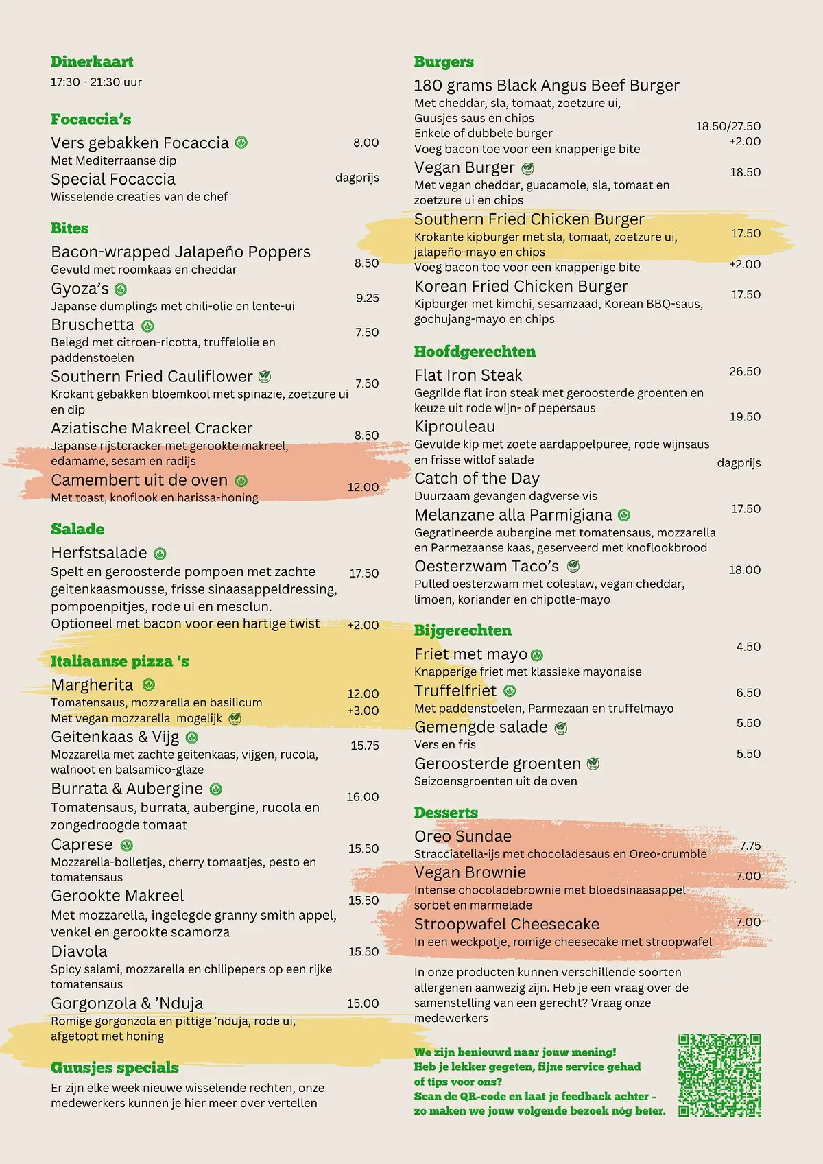 Vanaf 17:30 uur serveren we onze dinerkaart met onder andere: