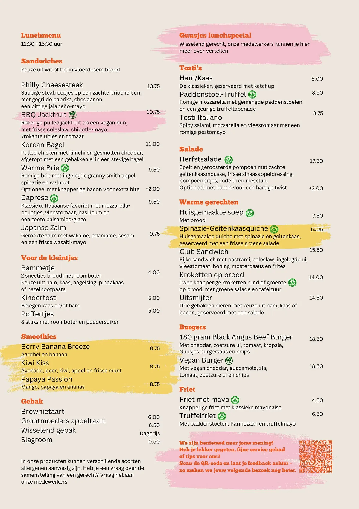Menukaart Guusjes: van lunch tot diner, altijd iets lekkers!